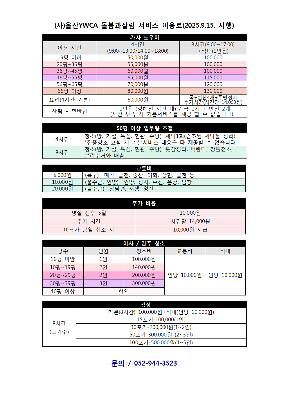 (»ç)¿ï»êYWCA µ¹º½°ú»ì¸² °¡»ç¼ºñ½º ÀÌ¿ë·á º¯°æ ¾È³»