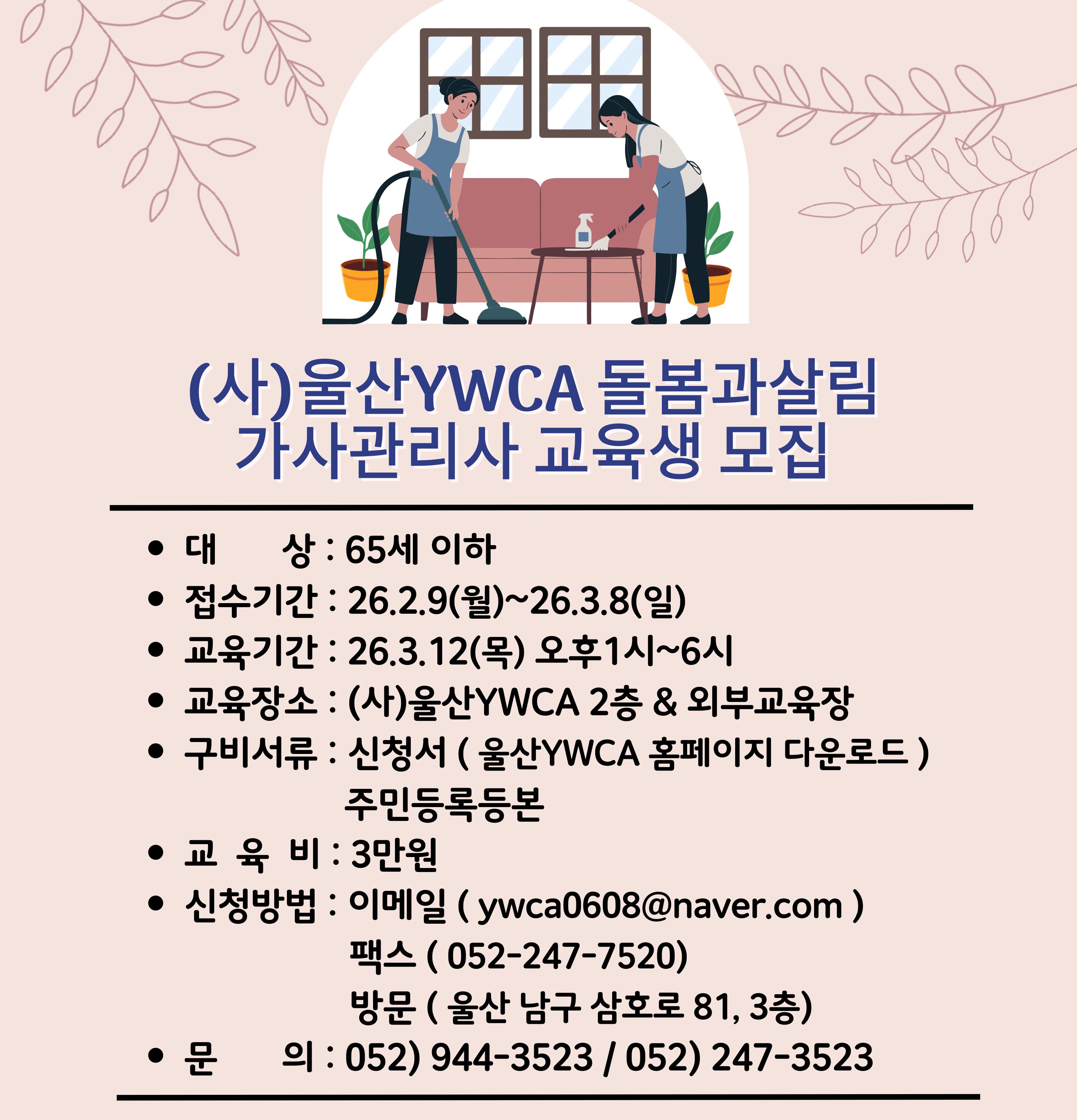 (»ç)¿ï»êYWCA µ¹º½°ú»ì¸² °¡»ç°ü¸®»ç ±³À°»ý ¸ðÁý