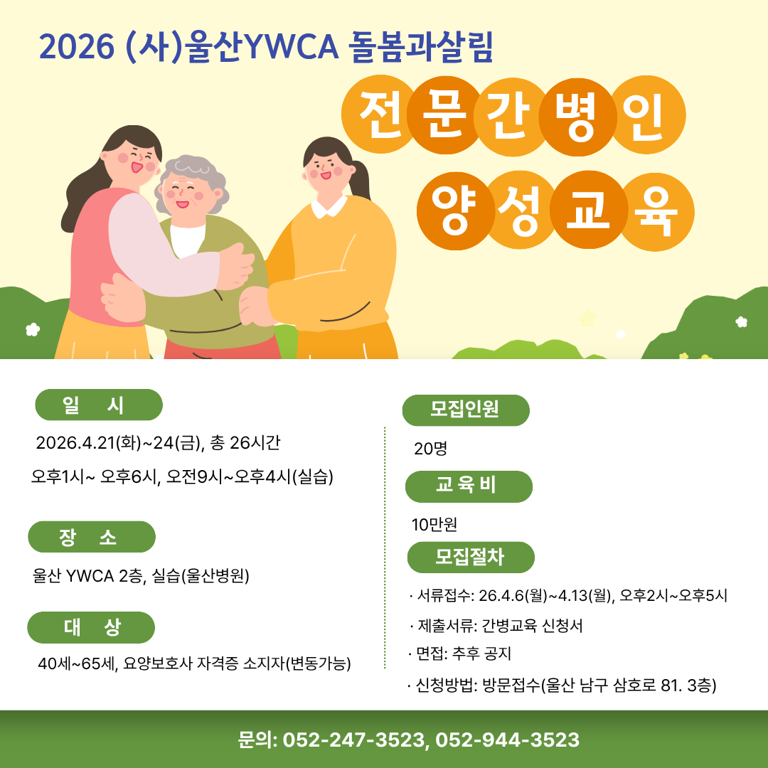 2025³â (»ç)¿ï»êYWCA Àü¹® °£º´ÀÎ ±³À°»ýÀ» ¸ðÁý ÇÕ´Ï´Ù.